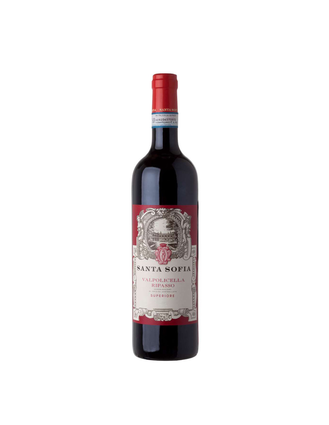 Il Valpolicella Ripasso Superiore della cantina Santa Sofia è un vino rosso morbido, versatile e incredibilmente piacevole prodotto a Marano di Valpolicella, Fumane e San Pietro in Cariano, in provincia di Verona, in Veneto. Questa etichetta è ottenuta da un blend di uve Corvina, Corvinone, in prevalenza, e Rondinella, provenienti da vigne allevate con il metodo tradizionale a guyot su dolci colline, esposte a sud-est, a un’altitudine compresa tra i 150 e i 260 metri. I terreni, che godono di un ottima ventilazione e drenaggio, sono caratterizzati da suoli calcarei di medio impasto. La cantina, contornata da una villa palladiana di indiscussa bellezza, è di proprietà della famiglia Begnoni che l’acquista negli anni sessanta e si fa oggi promotrice di diverse iniziative quale custode privilegiato di questo luogo meraviglioso.